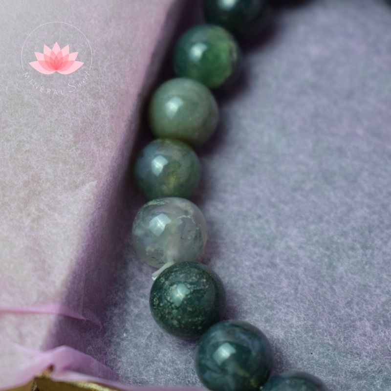 Bonita pulsera de Ágata musgo en perla redonda de 10mm
