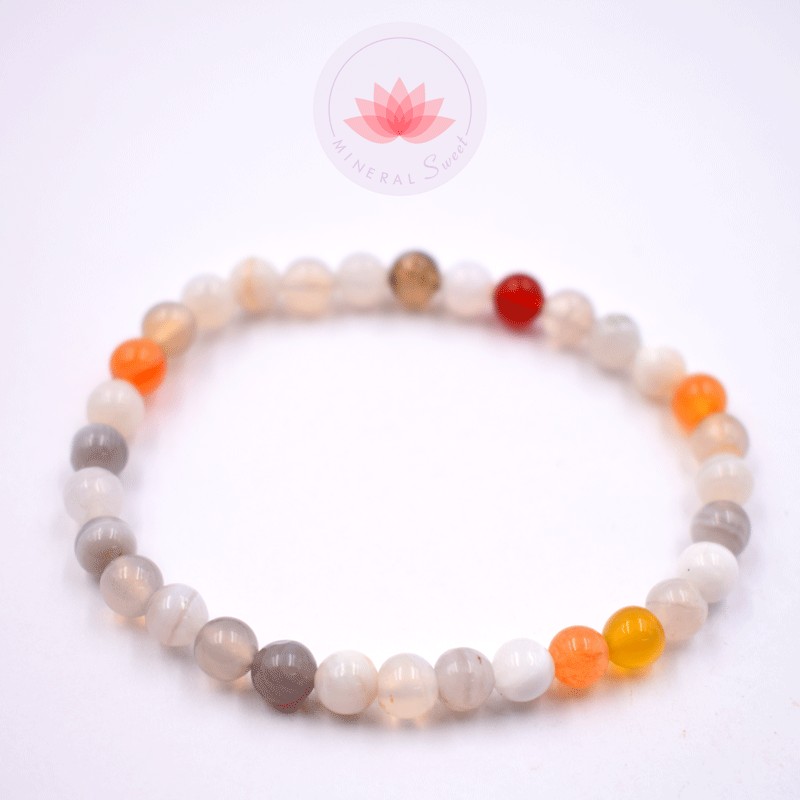 Bonita pulsera de ágata en perlas redondas de 6mm.