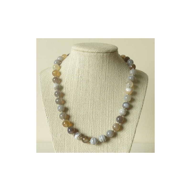 Hay que diferenciar bien entre las ágatas de colores vivos (azules, rosas, violetas, verde fosforescente... etc.) teñidas de modo artificial, y las ágatas naturales en tonos más dulces, marrones, grises, beige y naranja claro.