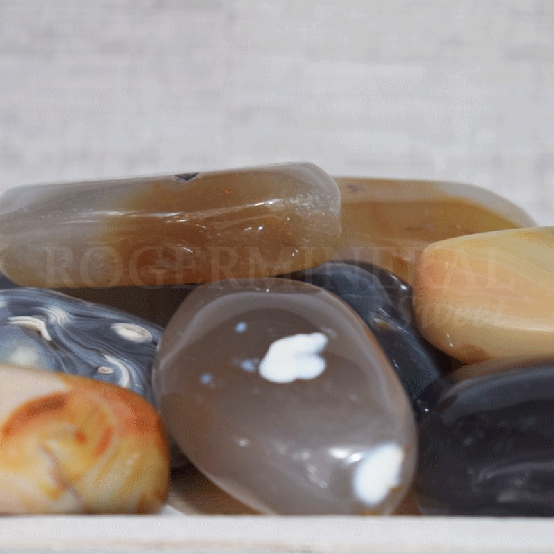 El origen de su nombre proviene de un río de Sicilia dónde se encontró en abundancia. Existe una gran variedad de Ágata, con numerosos matices.