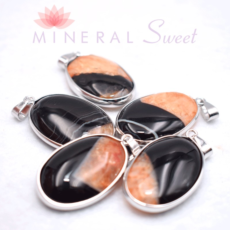 Colgante ágata con montaje en metal blanco.