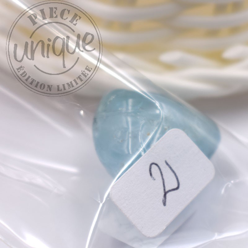 El aguamarina es una piedra tranquilizante, de serenidad, de ligereza. Es refrescante como agua de la fuente. Piedra de clarificación mental, piedra de disciplina y igualmente de resistencia.
