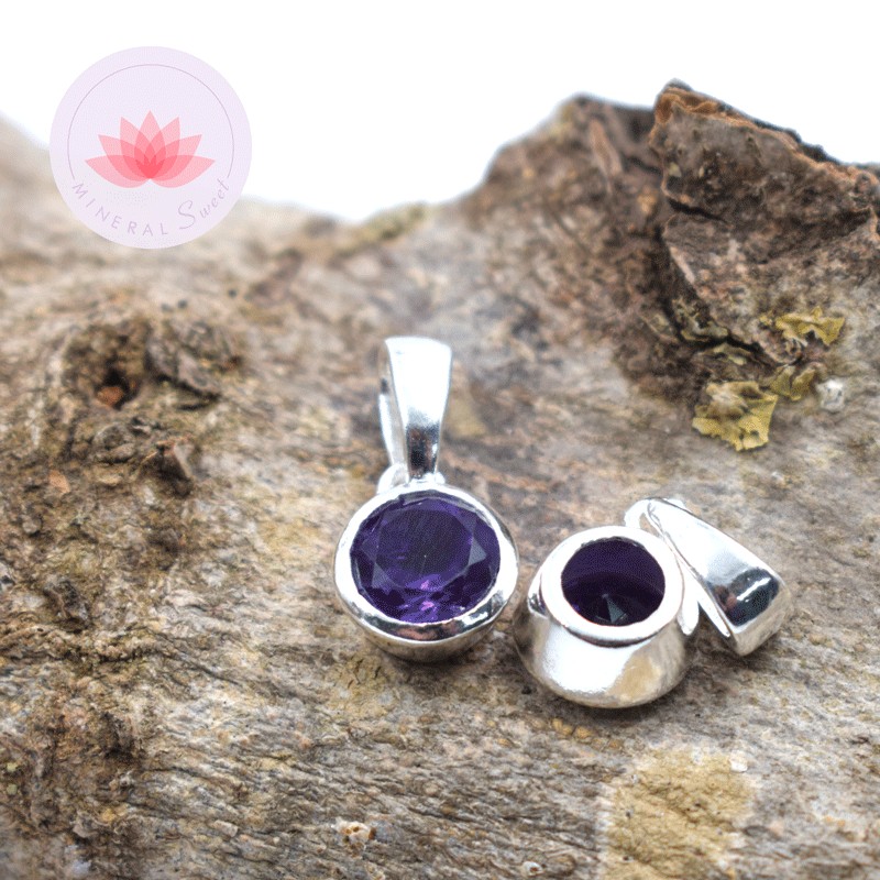 Bellos colgantes de Amatista facetada, montados en plata de 925