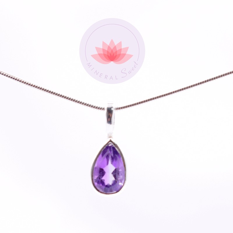 Conjunto colgante Amatista mini lágrima más cadena plata 40cm