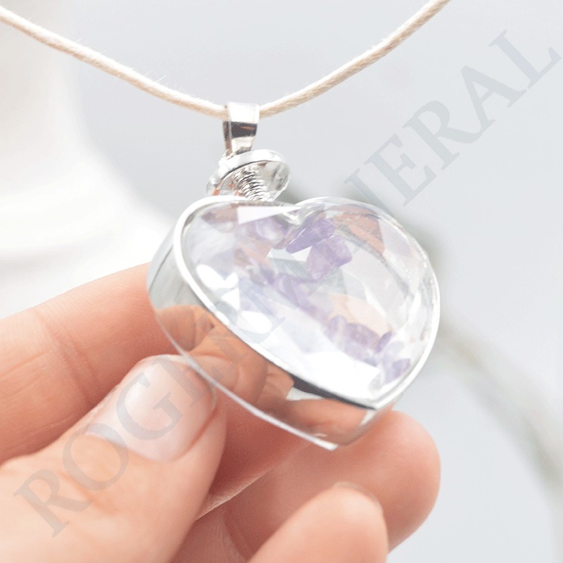 Bonito corazón en cristal que contiene pequeños fragmentos de amatista.