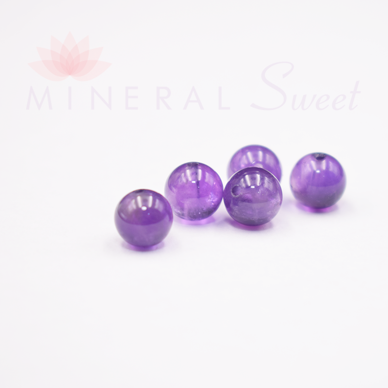 Amatista natural, perlas 8mm por unidad, precio a escala según la cantidad adquirida.