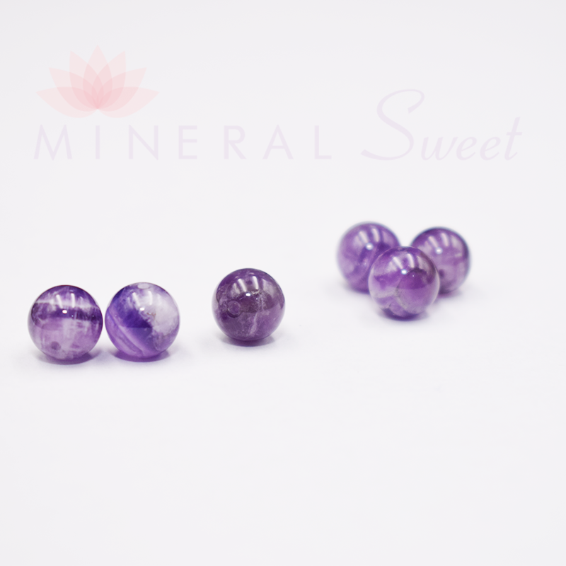 Perlas redondas en amatista lavanda natural, por unidad. Diámetro 8mm.