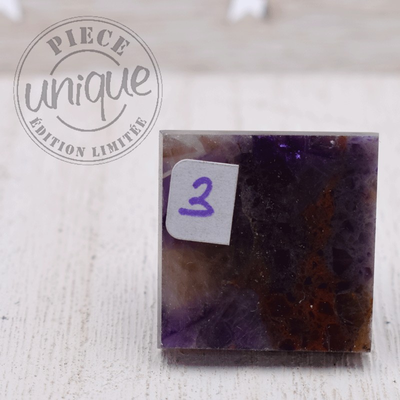 La composición química de la amatista es la misma del cuarzo, el dióxido de silicio (SiO2); su color proviene de los elementos de manganeso y de hierro, los cuales se han ido añadiendo durante ciertas modificaciones naturales de la piedra.