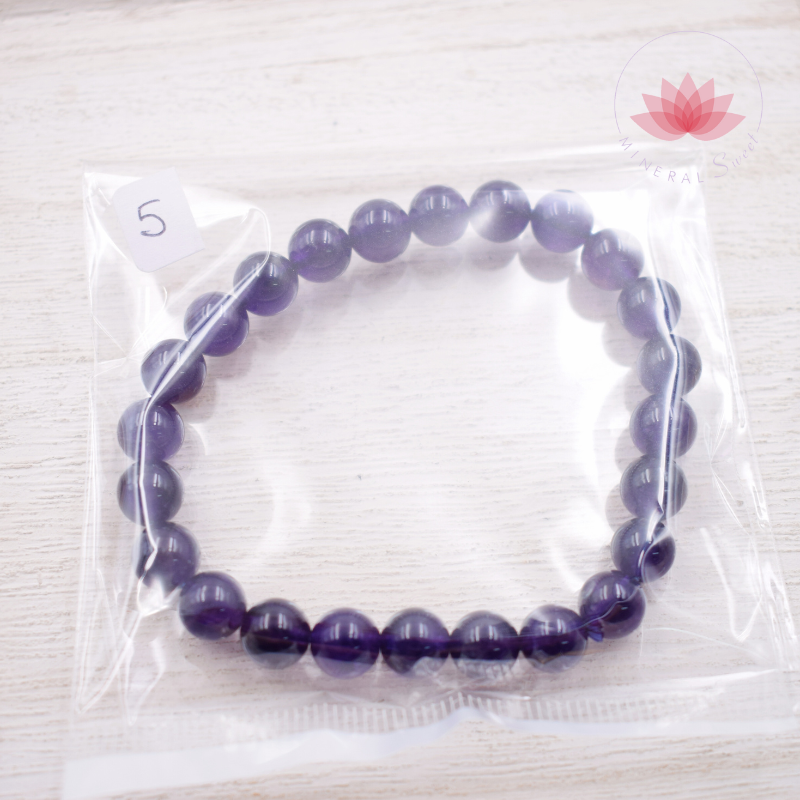 Bonita pulsera de amatista en perlas redondas de 8mm.