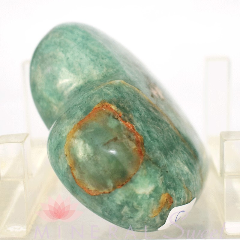La Amazonita permite una mejor percepción de los sentimientos sinceros y recíprocos. Da un sentimiento de plenitud a quine la lleva. Piedra de calma, especialmente cuando se trata del sentimiento de la frustación. Es una piedra de determinación para la vida personal, y también es una piedra de expresión liberada.