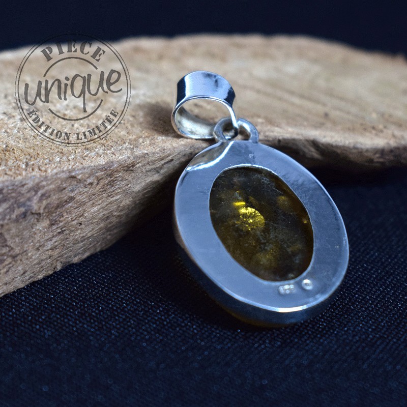 Bonito colgante en ámbar natural montado en plata de 925.
