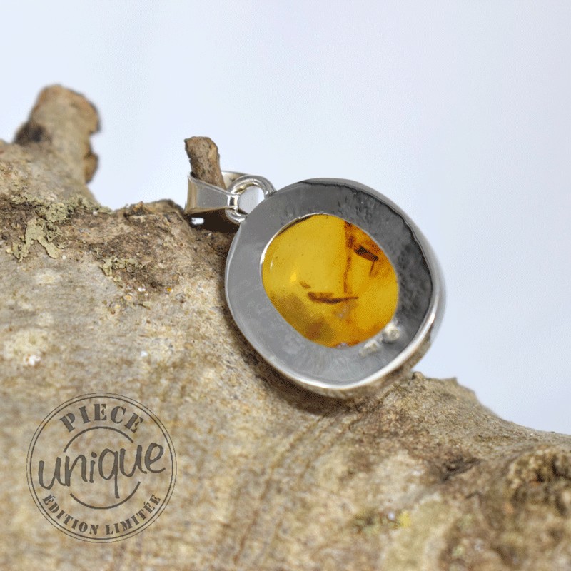 Colgante en ámbar natural montado en plata de 925.