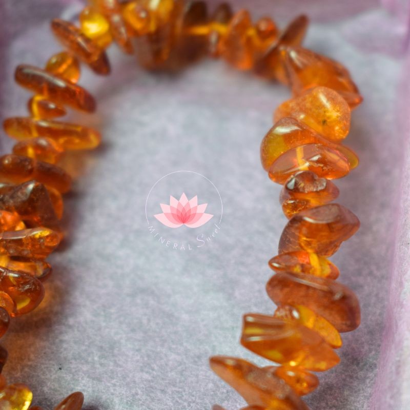 El ámbar ayuda a quien lo lleva a afirmarse y a tomar posesión de su lugar. Permite expresar la personalidad y también imponerse en un ambiente. Permite dinamizar la reflexión y el desarrollo intelectual. En este sentido, el ámbar ayuda a luchar contra las varias formas de la depresión. Por su color amarillo, solar, el ámbar está considerado como un mineral de alegría, de dinamismo, de confianza en uno mismo.