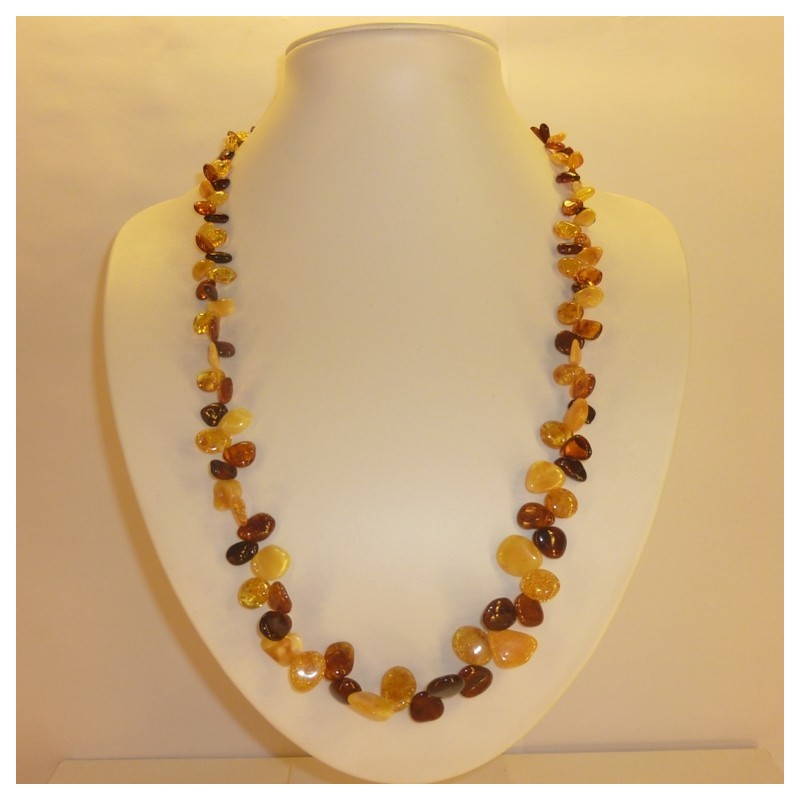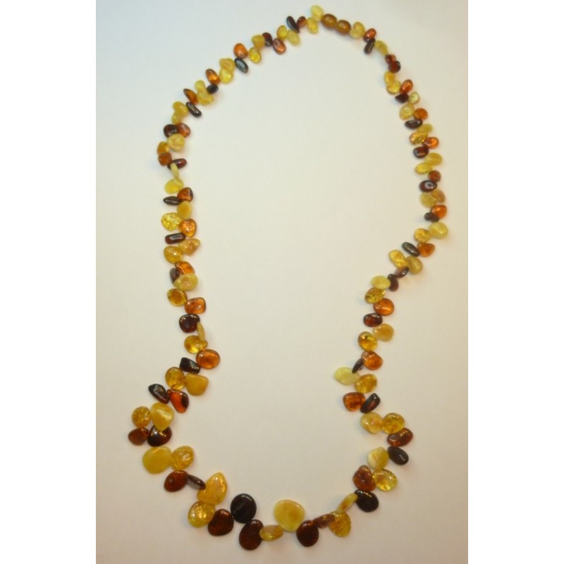 Bonito collar largo en cuentas de ámbar en forma de pétalo.