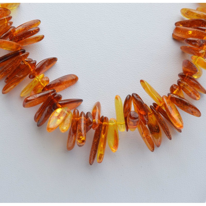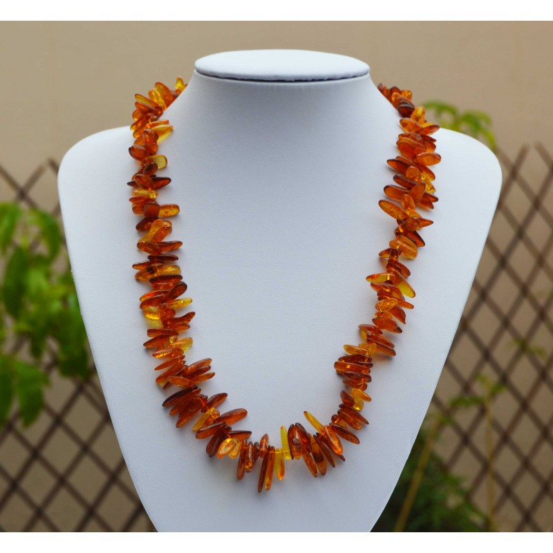 Bonito collar de perlas tipo grano de arroz de ámbar oscuro.