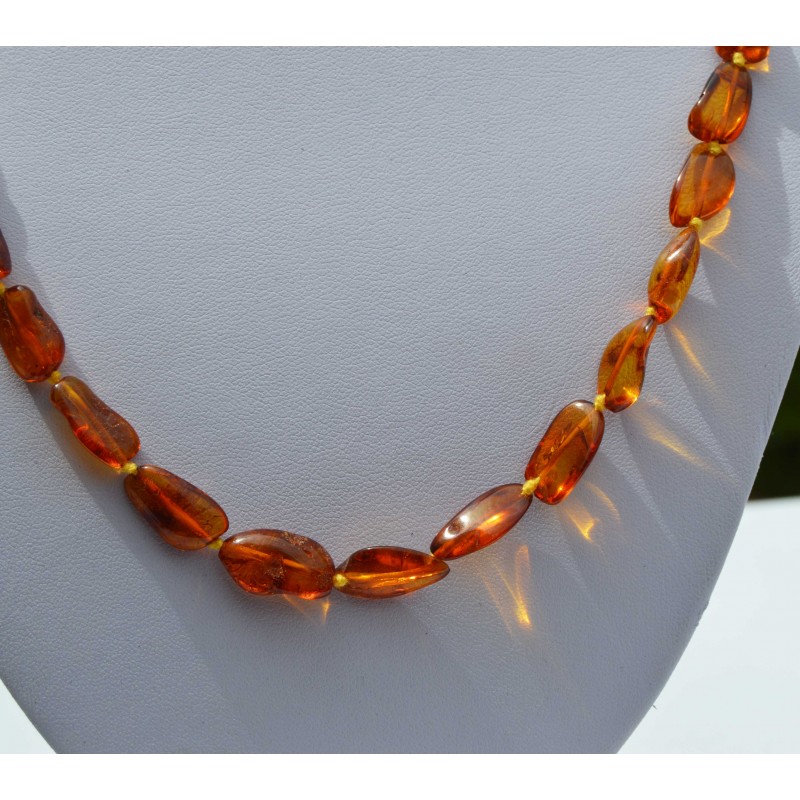 Bonito collar largo en pequeñas perlas irregulares de ámbar color miel.