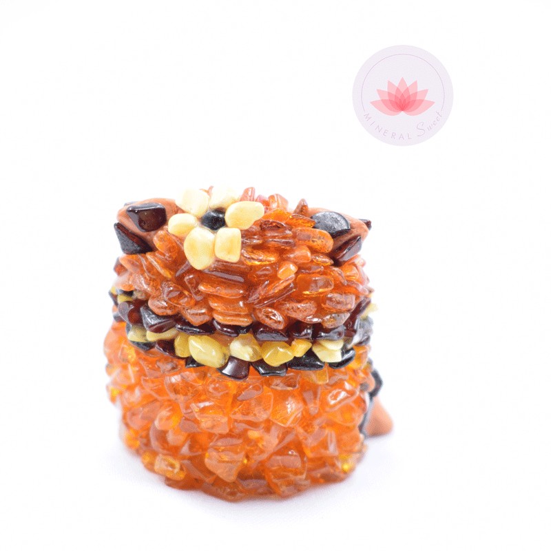 Simpático búho en ámbar y cerámica.