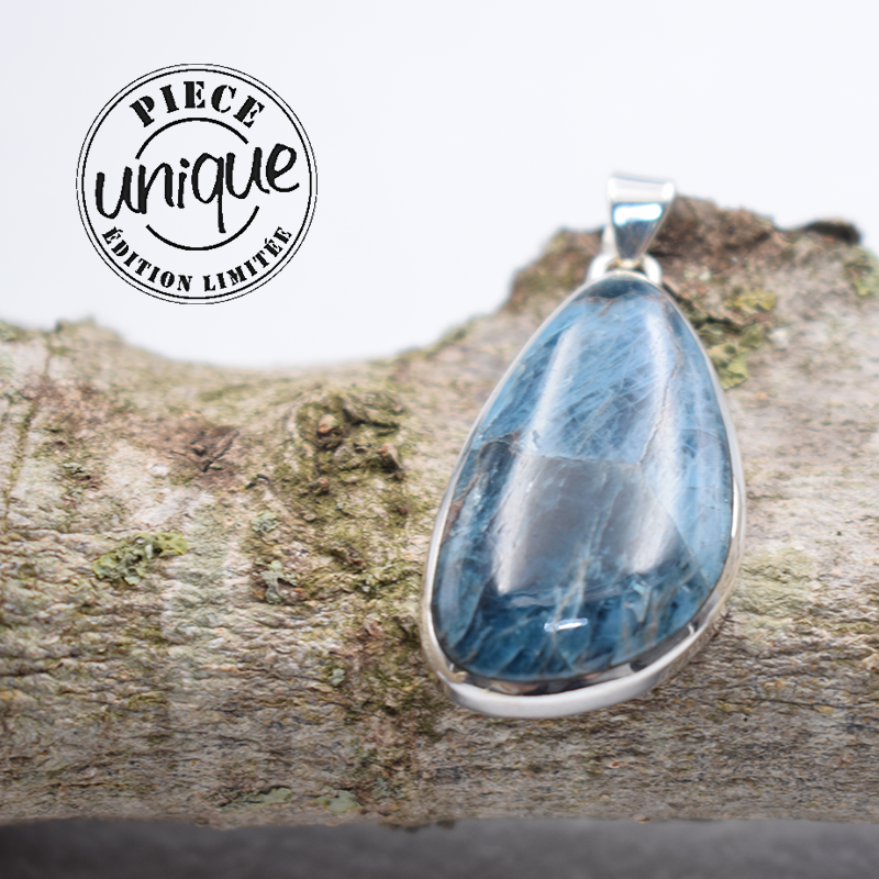 Bonito colgante de apatita azul montado en plata de 925.