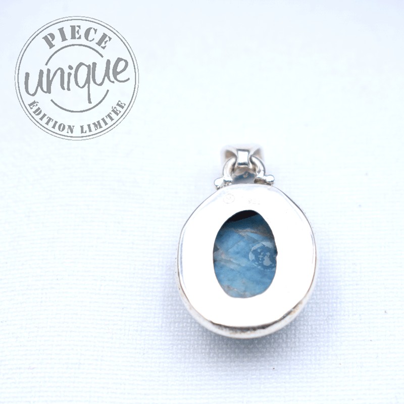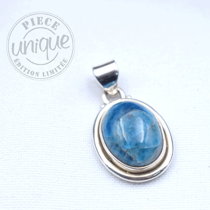 Bonito colgante de apatita azul montado en plata de 925.