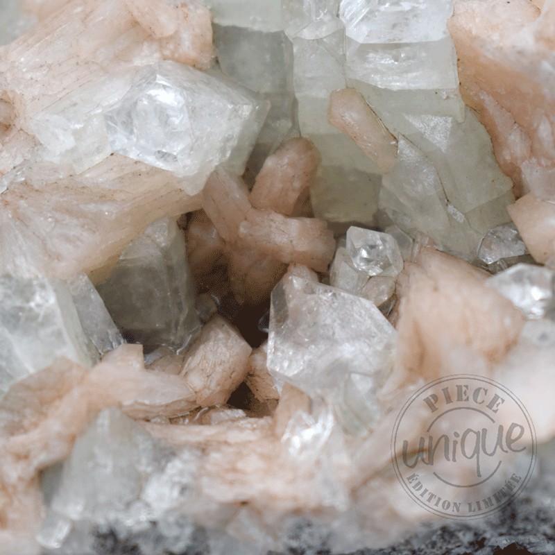 Bonita piedra natural de Apofilita con Estilbita.