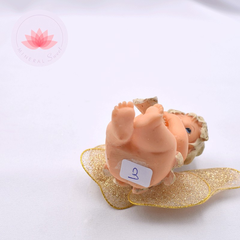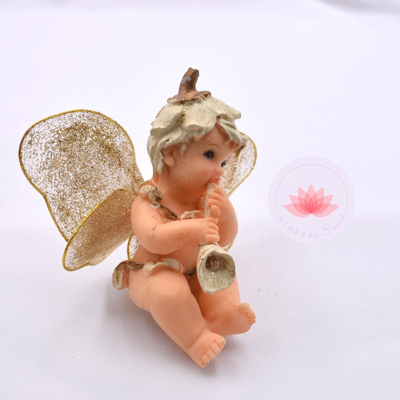 Bellos angelitos en resina con alas doradas.