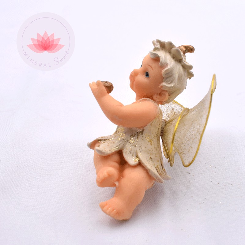Bellos angelitos en resina con alas doradas.