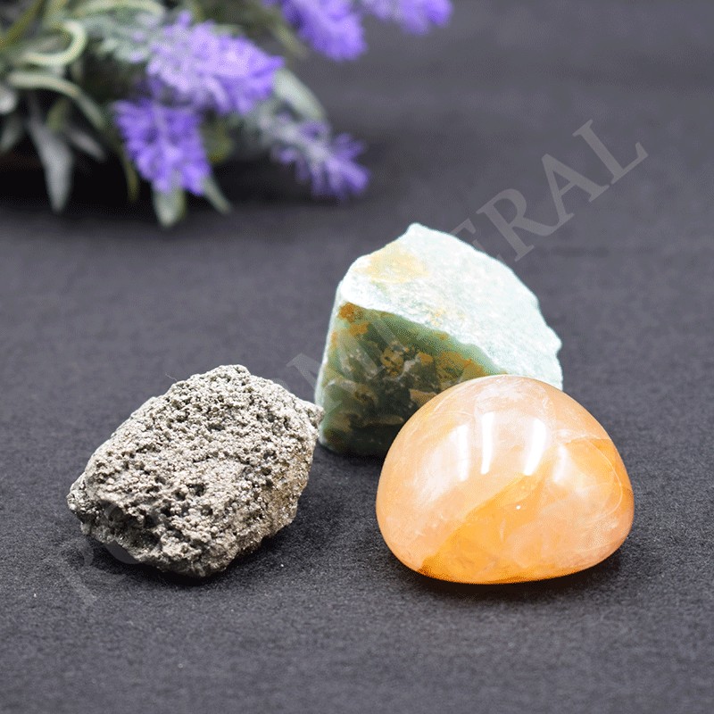 Está compuesto por 3 piedras: Cuarzo hematoide, Pirita y Aventurina verde bruta