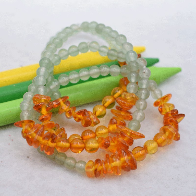 Esta pulsera está compuesta de 2 piedras: aventurina y ámbar.