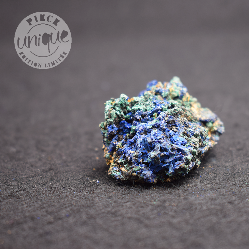 La azurita es un mineral compuesto de carbonato de cobre hidratado, de fórmula Cu3(CO3)2(OH)2.