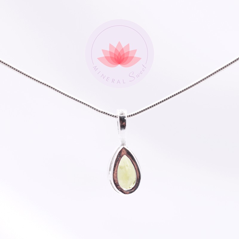 Pequeño colgante de peridoto montado en plata de 925 con su cadena de plata tipo serpiente de 42cm