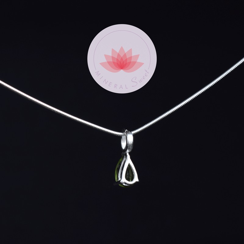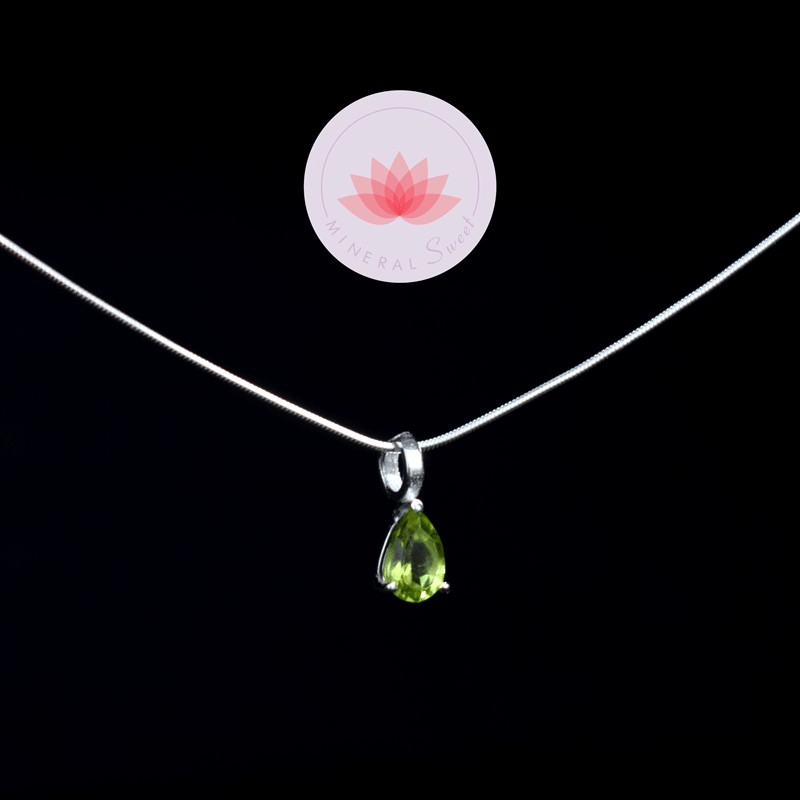 Pequeño colgante de peridoto montado en plata de 925 con su cadena de plata tipo serpiente de 40cm