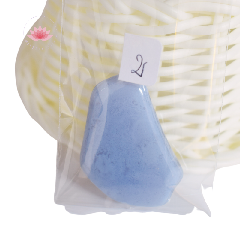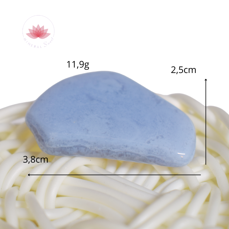 La calcedonia es un mineral compuesto de cristalitas de cuarzo de medidas comprendidas entre 50 y 100nm3 dispuestas en fibras. Se trata de una fase del silicio. Su fórmula es un dióxido de silicio (SiO2). Forma parte de la familia de las ágatas. Su color puede ser azul, gris lechoso azulado o malva pálido.