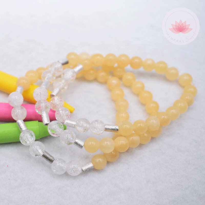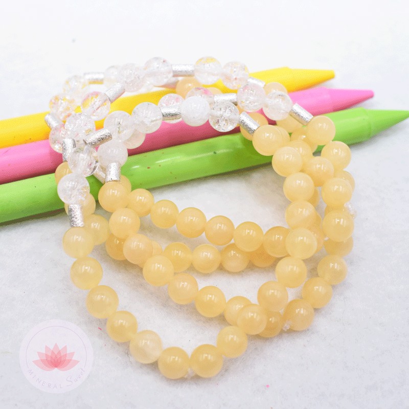 Pulsera para niña en Calcita amarilla, Cristal de roca y piezas en metal color plata.