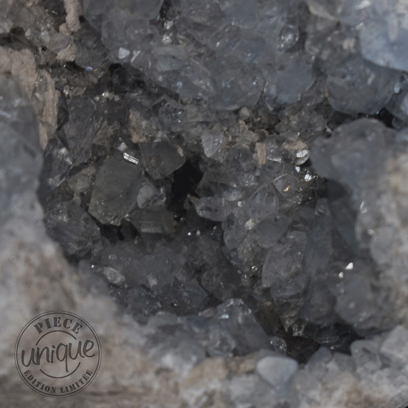 Por su color, la celestina es un vínculo con el cielo. Así, se la considera una piedra de serenidad, de calma, de comunicación fluida.