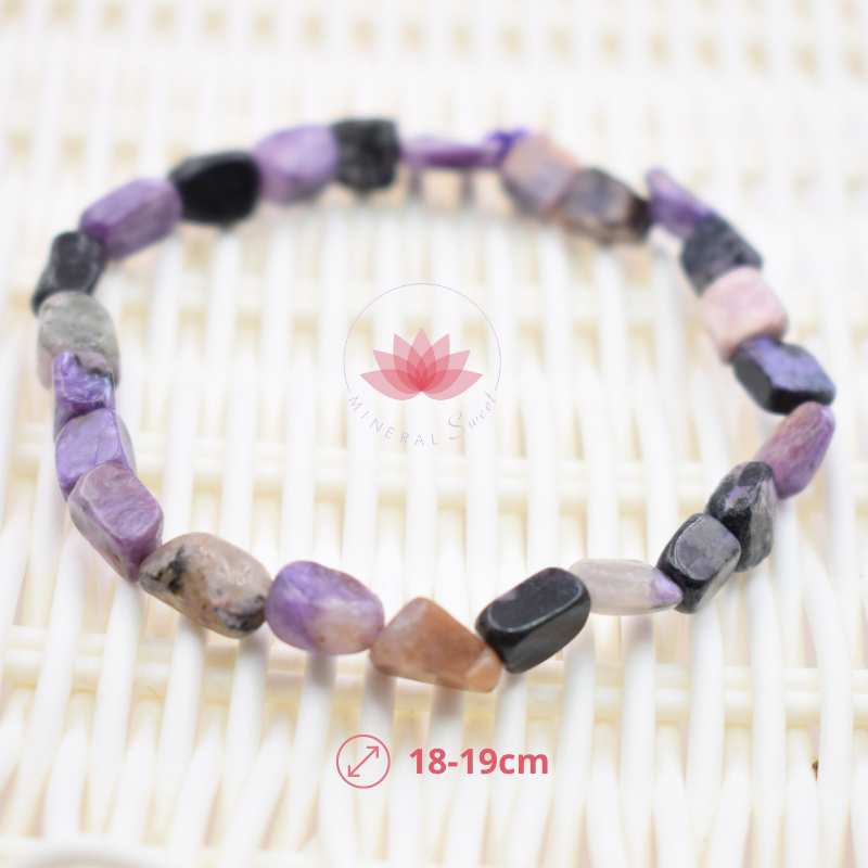 Bonita pulsera en Charoíta tallada tipo nugget.