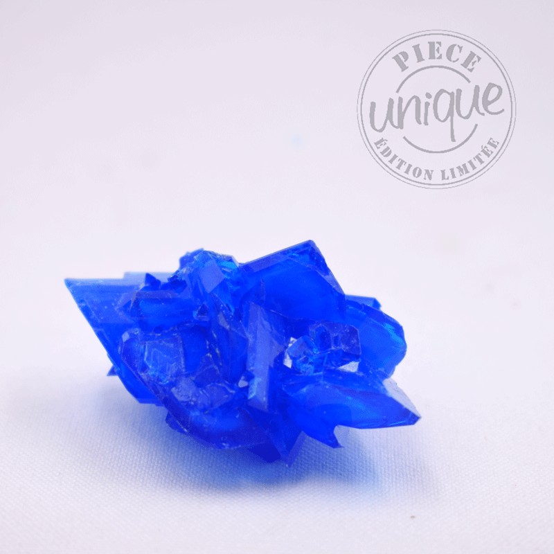 Pieza de sulfato de cobre cristalizado con su cajita de exposición.
