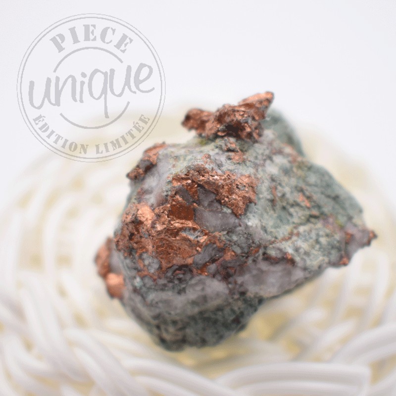 El cobre nativo, por su gran conductibilidad, se utiliza también desde un punto de vista etéreo y psíquico. En este ámbito, favorece la circulación de la energía a través de los chakras hacia las alturas. Es un buen elemento para favorecer la capacidad de comunicar con "el otro mundo". Toda piedra engarzada en cobre o utilizada con cobre posee un campo de energía mejorado. El cobre mejora incluso la energía de la plata y del oro.