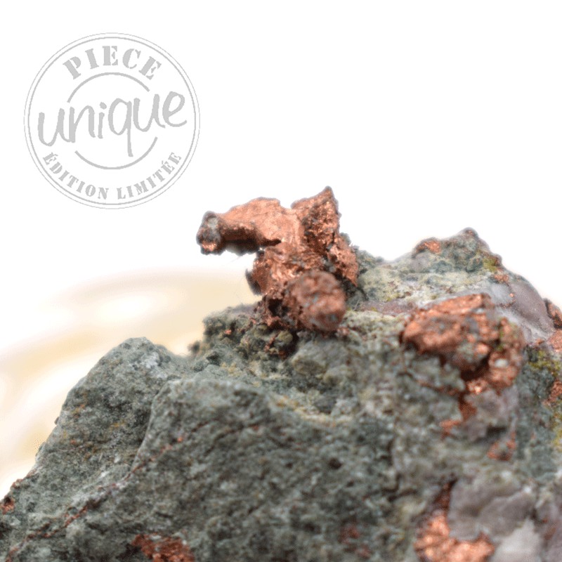 Simbolismo del cobre nativo: el rojo es el color de Marte, el planeta del dios del mismo nombre; mientras que el verde es el color de Venus, planeta de la diosa Venus-Afrodita. En la mitología grecolatina, Marte y Venus son amantes. El cobre naturalmente rojo se vuelve verde por oxidación húmeda, es decir, por el agua, el elemento de Venus. Estos dos colores son complementarios.