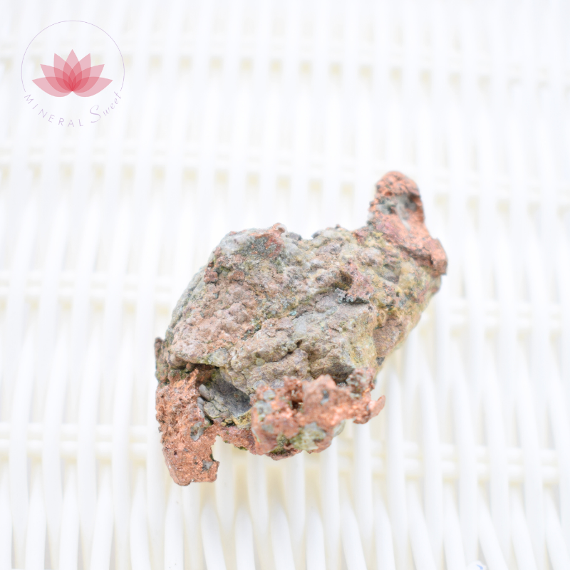 Simbolismo del cobre nativo: el rojo es el color de Marte, el planeta del dios del mismo nombre; mientras que el verde es el color de Venus, planeta de la diosa Venus-Afrodita. En la mitología grecolatina, Marte y Venus son amantes. El cobre naturalmente rojo se vuelve verde por oxidación húmeda, es decir, por el agua, el elemento de Venus. Estos dos colores son complementarios.