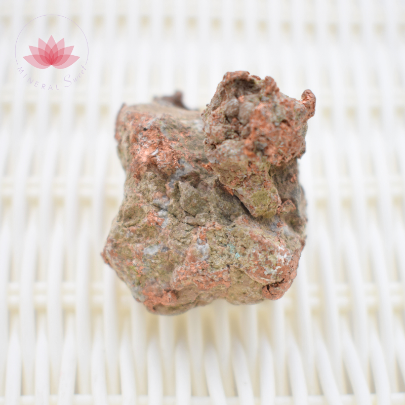 Simbolismo del cobre nativo: el rojo es el color de Marte, el planeta del dios del mismo nombre; mientras que el verde es el color de Venus, planeta de la diosa Venus-Afrodita. En la mitología grecolatina, Marte y Venus son amantes. El cobre naturalmente rojo se vuelve verde por oxidación húmeda, es decir, por el agua, el elemento de Venus. Estos dos colores son complementarios.