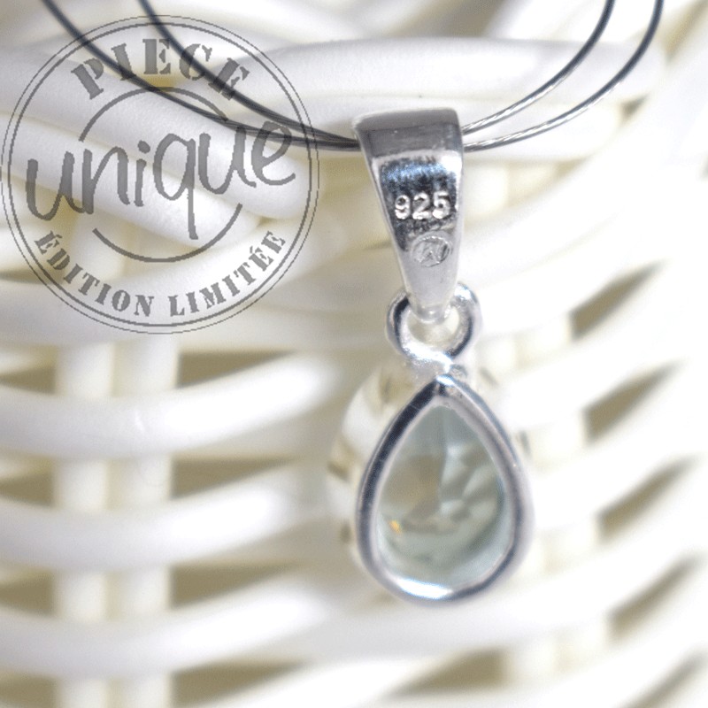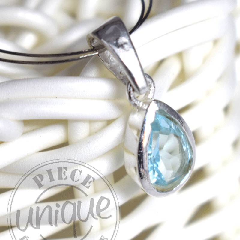 Bonito colgante de topacio azul, forma gota, montado en plata de 925