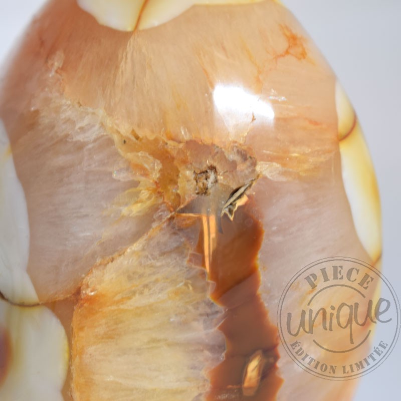 Por su color, es una piedra que engendra el dinamismo. Anima a salir adelante. Este color es tonificante, comunicativo. La cornalina es una piedra femenina, las mujeres se sienten bien con ella.