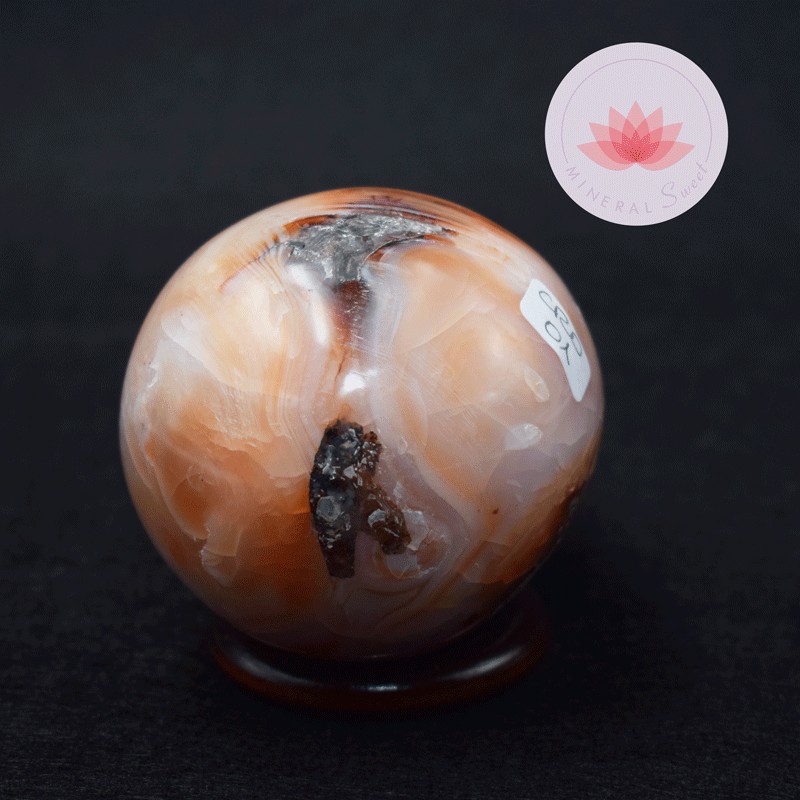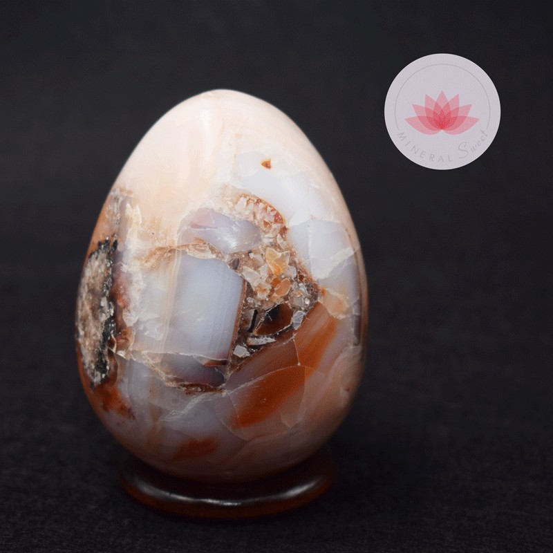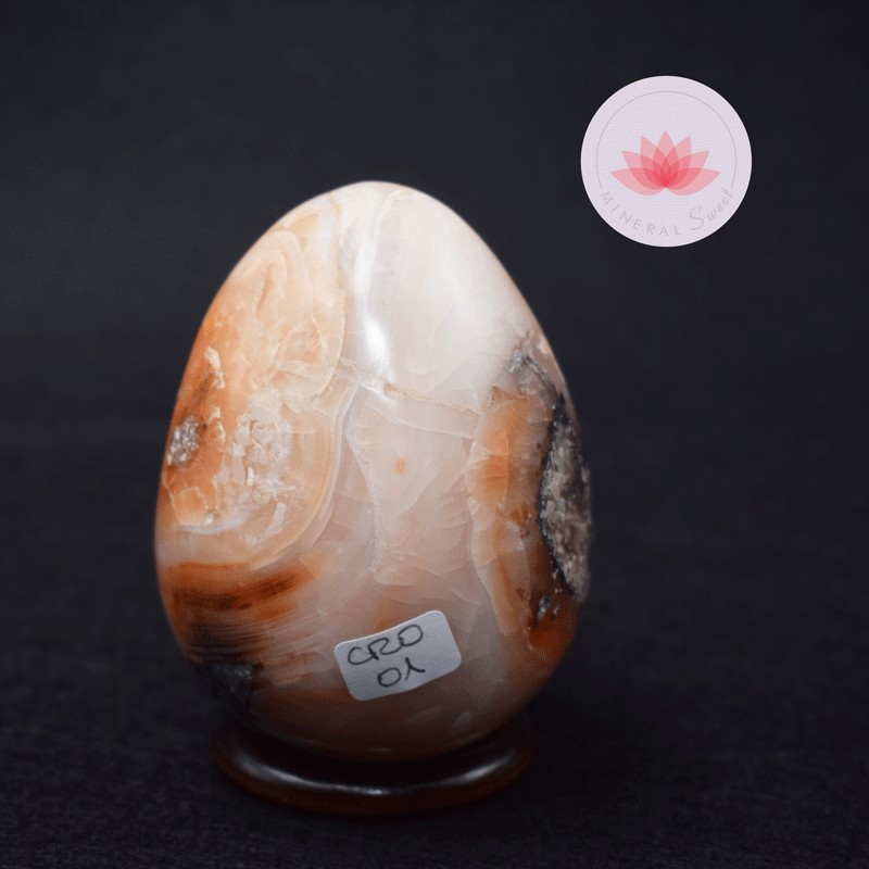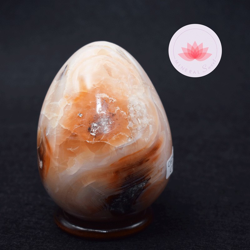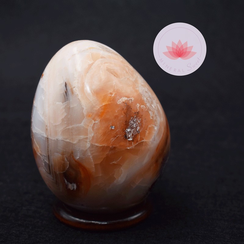 Bello huevo en Cornalina, origen Madagascar. Se envía con un aro de bambú a modo de soporte.