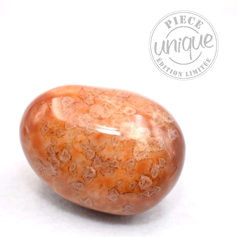 Por su color, es una piedra que engendra el dinamismo. Anima a salir adelante. Este color es tonificante, comunicativo. La cornalina es una piedra femenina, las mujeres se sienten bien con ella.