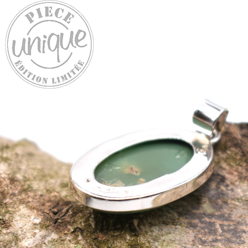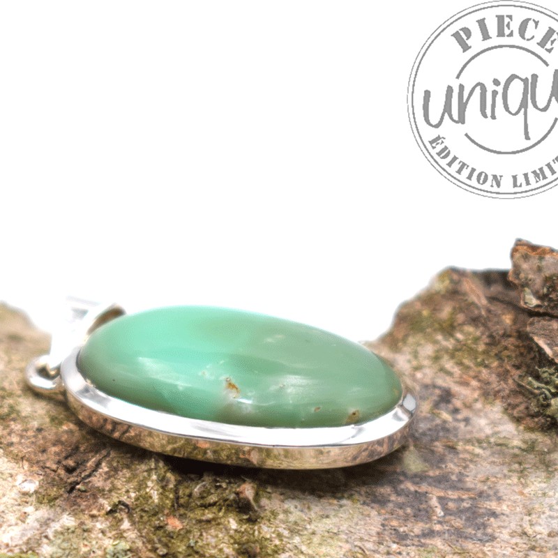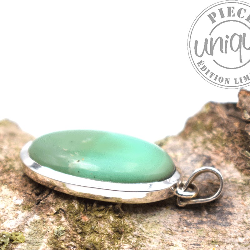 Bonito colgante de Crisoprasa montado en plata.