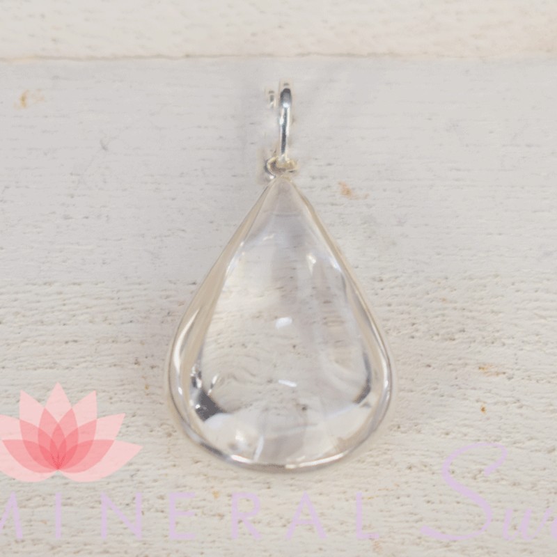 Bonito colgante en Cristal de roca y forma de gota, montado en plata.