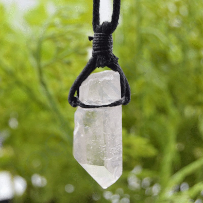 Colgante en Cristal de roca bruto con cordón negro.
