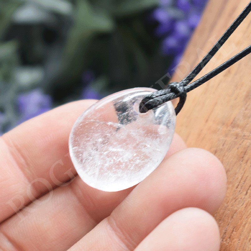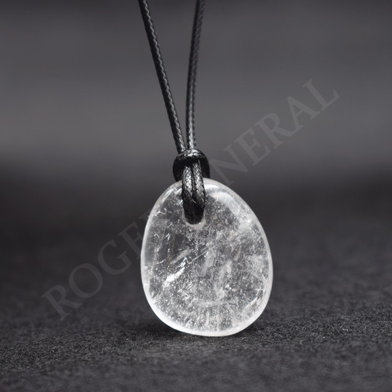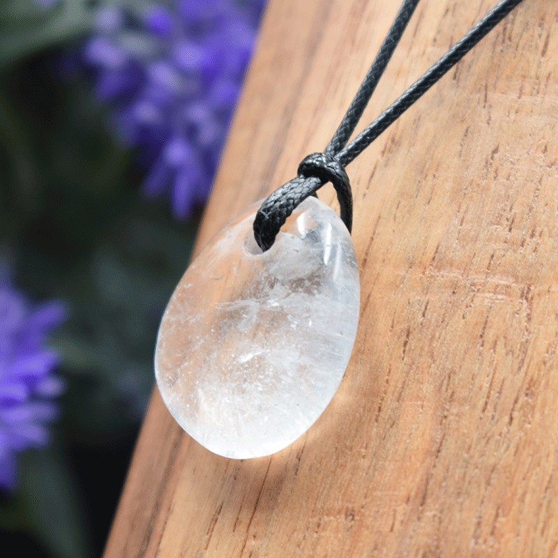 Bonito colgante en Cristal de roca. Se envía montado en un cordón negro.