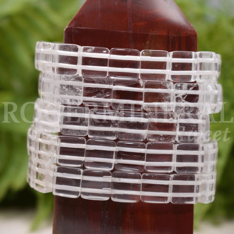 Pulsera Cristal de roca perlas cuadradas 10mm