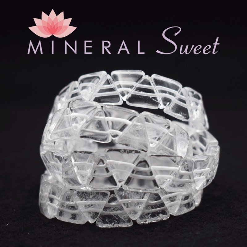 Bonita pulsera en Cristal de roca, perlas talladas en triángulo.